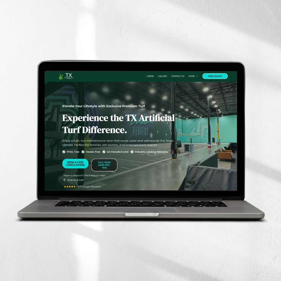 Texas Artificial Turf & Design needed a website that not only looked professional, but also functioned as an effective lead generation tool. The challenge was to align the brand visually and strategically while improving how leads were captured, tracked, and measured across the website.